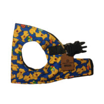 Your furry friend can easily walk in to this choke-free harness that grabs around your pet’s chest and shoulders for full support. A plastic buckle and velcro on top allow for greater adjustment and secure closure. The fleece inner lining helps your dog feel comfortable inside this unique harness.